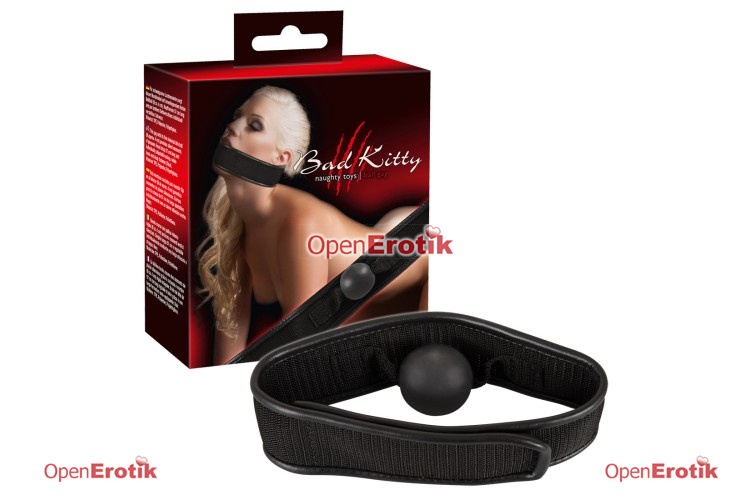 Für schweigsame Lustmomente sorgt dieser Mundknebel mit innenliegendem festen Beißball (Durchmesser ca. 4 cm). Kopfriemen 57 cm lang und per breitem Klettverschluss individuell verstellbar. Schwarz.
