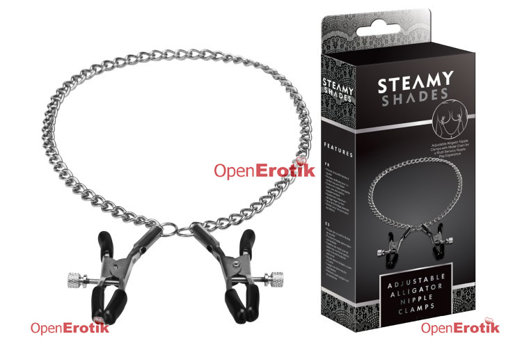 Die Steamy Shades Schmetterlingsklemmen, die durch eine Kette miteinander verbunden sind, sind für Fortgeschrittene intensiver Fesselspielchen perfekt geeignet.