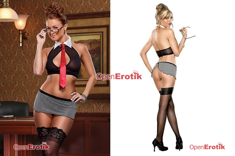 Bra, Skirt and G-String Set Black- S/M